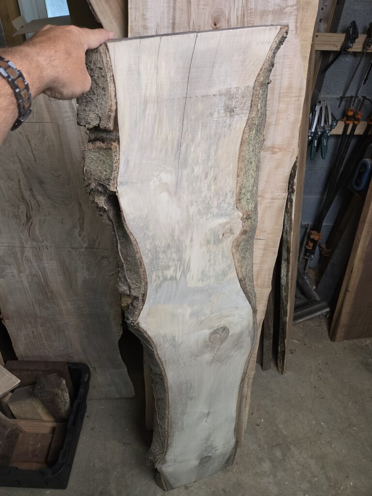 9.7 bf × $12.00/bf × AD × width 13–20″ × figure × surfacing × character